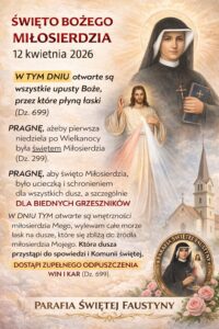 - Dzisiaj przeżywamy Niedzielę Miłosierdzia Bożego, która rozpoczyna Tydzień Miłosierdzia. Doświadczając miłosierdzia Bożego, powinniśmy być miłosierni dla naszych sióstr i braci. Stąd też dzisiaj, przy wyjściu z kościoła ofiarami do puszek wspieramy dzieła prowadzone przez Archidiecezjalną Caritas. Ogólnopolska Niedziela Modlitw za kierowców.